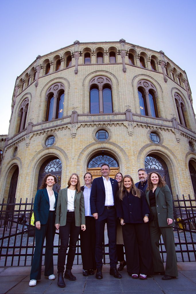 STORTINGSGRUPPA TIL MDG: Som består av Ingrid Liland, Une Bastholm, Siren Jensen, Arild Hermstad, Oda Indgaard, Frøya Skjold Sjursæther, Marius Dahlin og Julie E. Stuestøl. Foto: Ane Skarvøy, MDG.