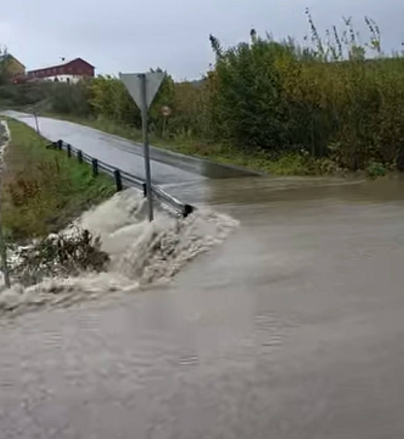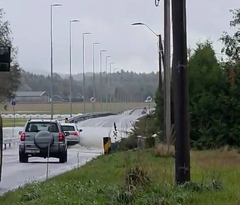 IKKE FARBAR VEI: Flere må klokelig nok snu i møte med store vannmengder på flere Re-veier lørdag 4. oktober 2025. Foto: ReAvisa-tipser.
