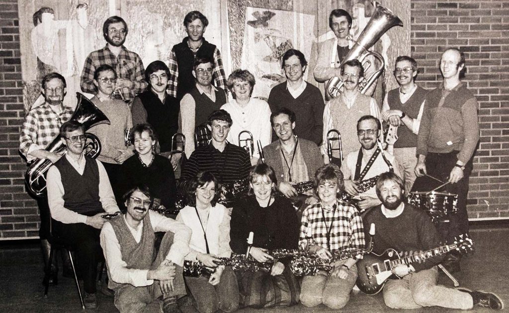 BESETNINGEN I 1983: Det eldste bildet av Storbandet Fokus i ReAvisa-arkivet. Foto: Storbandet Fokus.