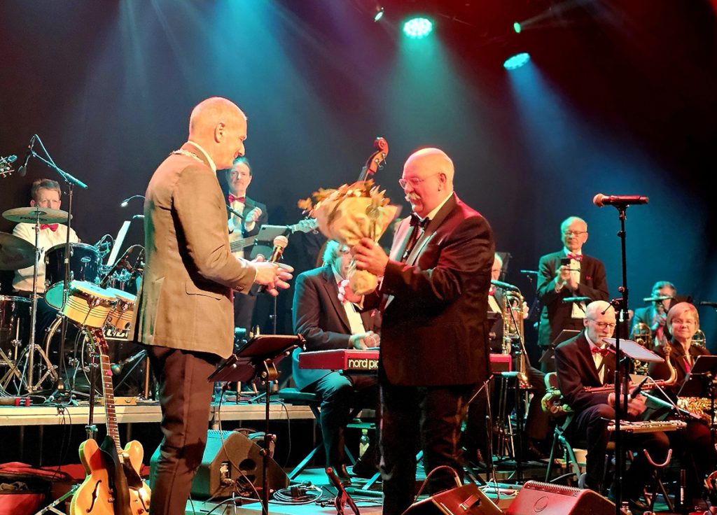 Knut Høydal, som også har dirigert storbandet, var gjest i salen kveld.