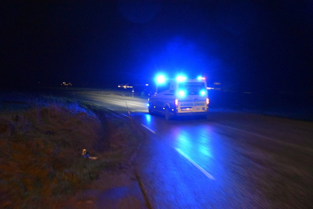 NØDETATER: Ambulanse på vei til Linnestad næringsområde. Foto: Stian Ormestad, ReAvisa.