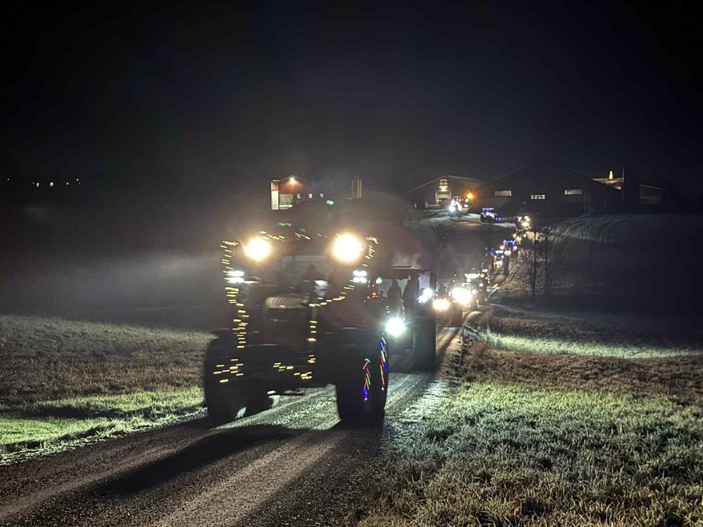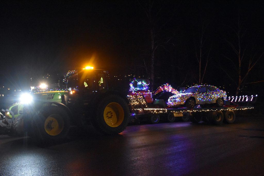 På veien er det fullt av folk som vinker, og flere slenger seg med – til og med julelys-pyntede tråsykler. Olivia, som kjørte en av traktorene, tror nok at hun blir stiv og støl i vinkearmen. Og kanskje smilemusklene. For det ble å vinke og smile i drøyt to timer.