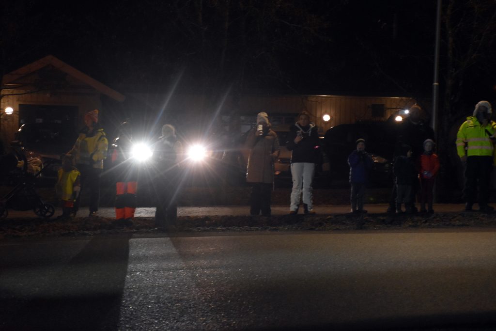 Langs så å si hele ruta sto det folk og vinka og smilte og viste hvor mye de setter pris på bygdeungdommens traktor-lys-show. Flere hadde også pynta med lys, fakler, med mer, langs ruta.