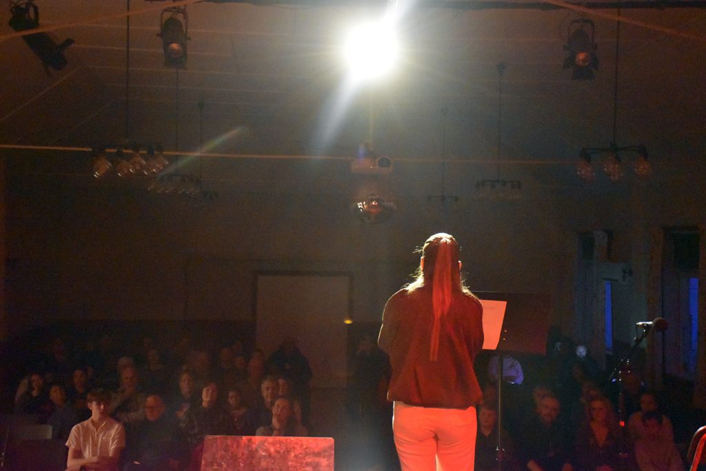 I SPOTLIGHTEN: Et fullsatt kulturhus hører fantastisk sang og musikk av unge talenter i Re, Tønsberg, Horten, Holmestrand og Sandefjord. Flest artister var fra Re. Foto: Stian Ormestad, ReAvisa.