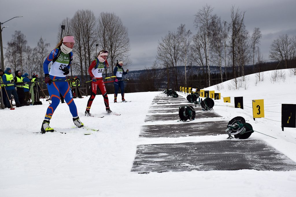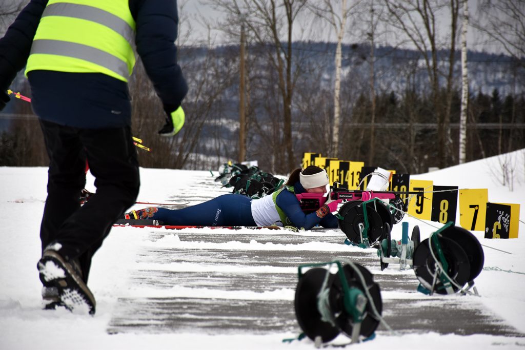 Vilde Joberg Horn sliter med utstyret ved første skyting, men får kjapt assistanse. Foto: Stian Ormestad, ReAvisa.