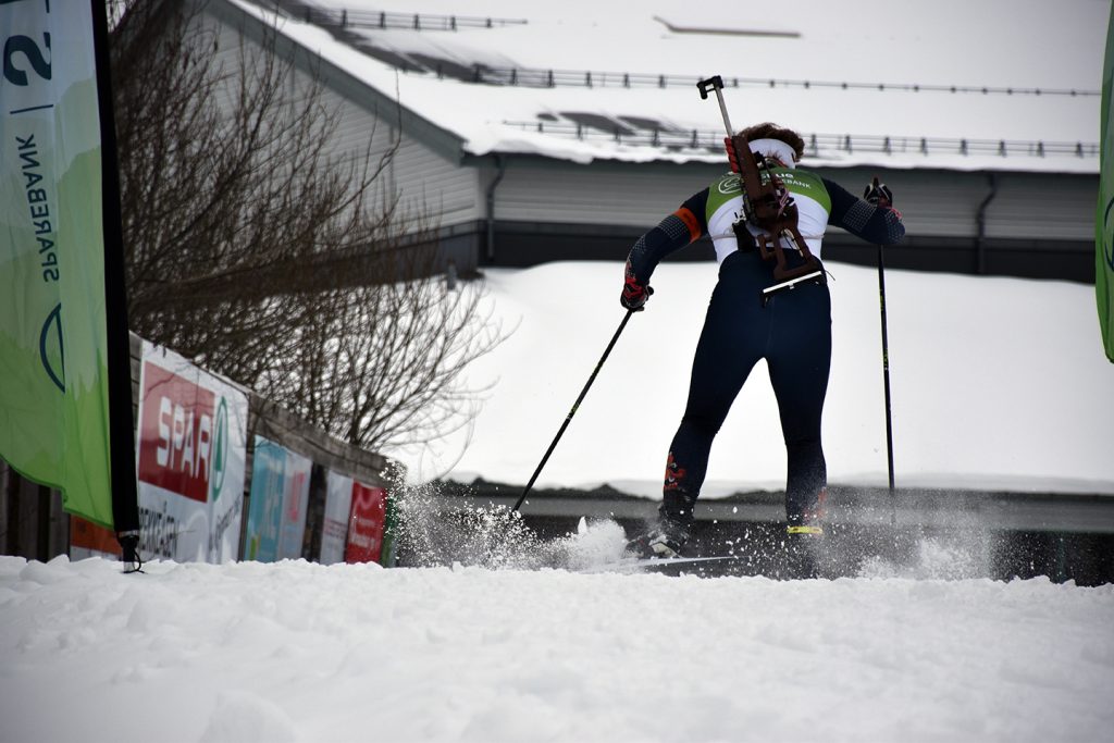 Speakeren skrøyt veldig av innsatsen, – dette er krevende forhold for skiskyting, ble det konkludert over speakeranlegget på Re-torvet skistadion.