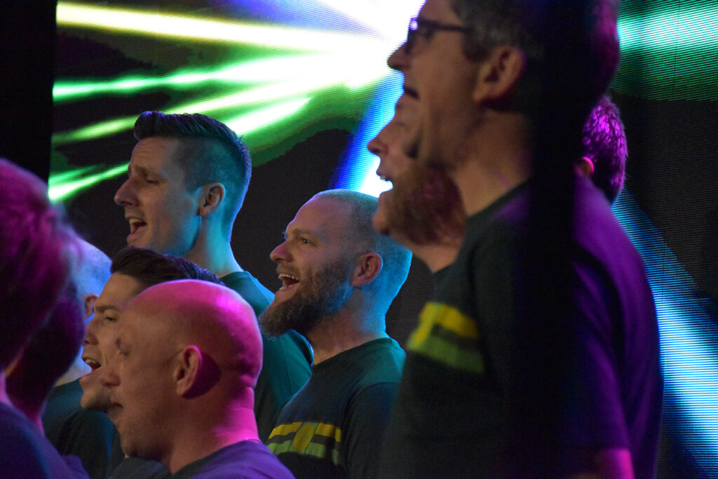 TRØKKER TE’: Det er mektig når det runger fra rundt 40 mannsrøster fra Re. Bildet er fra den aller første Goose-konserten. Foto: Stian Ormestad, ReAvisa.