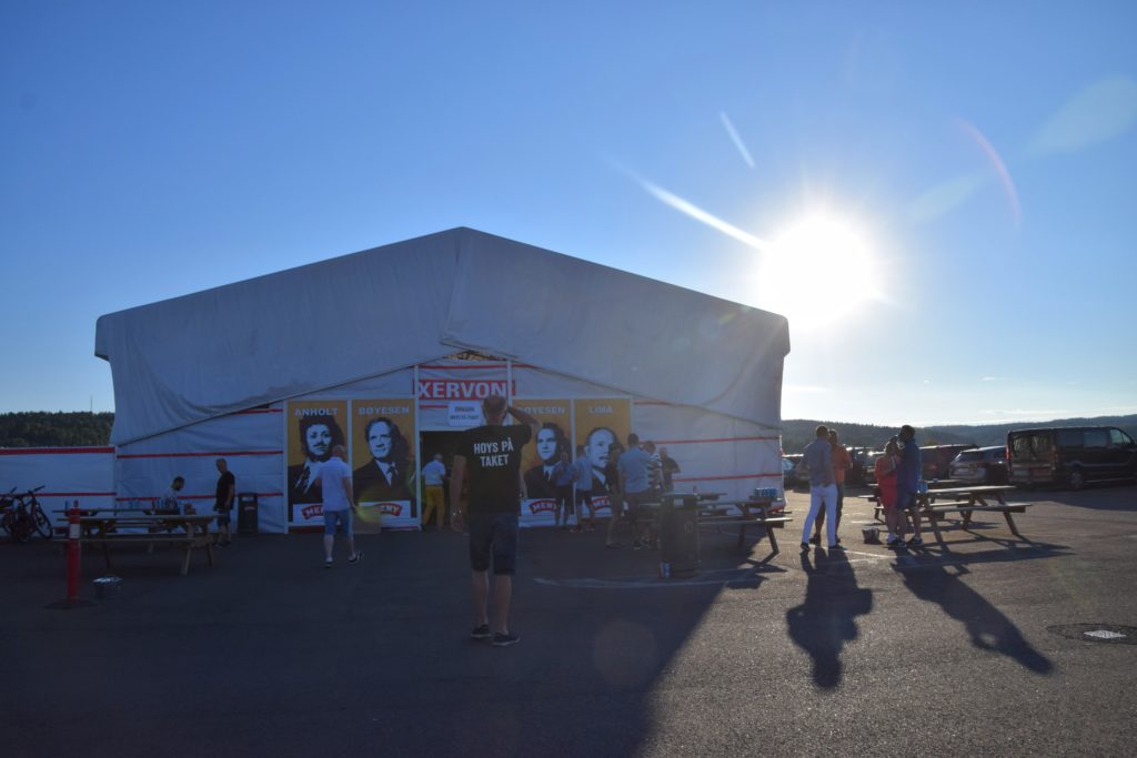 PARKERINGSHUS-JUBILEUM: Det er femten år siden parkeringshuset på Revetal ble bygd. Siden den gang har det blitt brukt til mye mer enn bare parkering. Som her, da det var sommershow i et stort telt på parkeringshus-taket. Seinere på vårparten i år blir det et stort marked i regi av Re motorklubb. Foto: Stian Ormestad, ReAvisa.