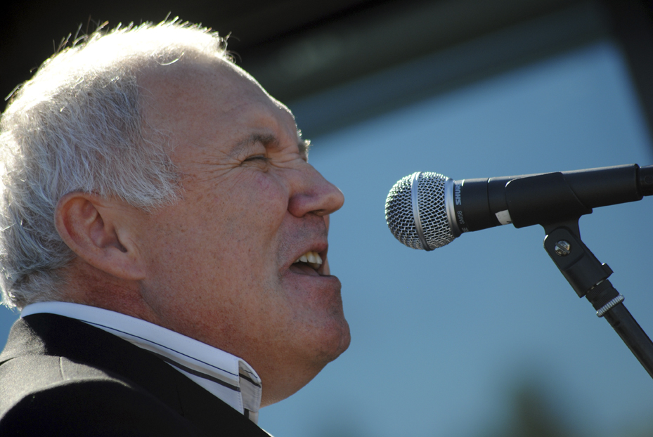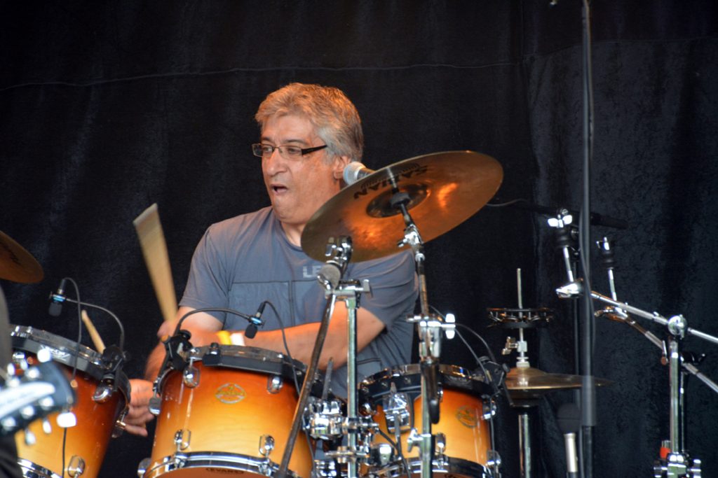 HYLLER SOLA: – Gøy å børste støvet av gamle taxmenner, forteller Frank Wedde før kveldens konsert, og han lover: – Vi spiller Here comes the sun igjen! Her i sola under en Re-festival tilbake i 2013. Foto: Stian Ormestad, ReAvisa.