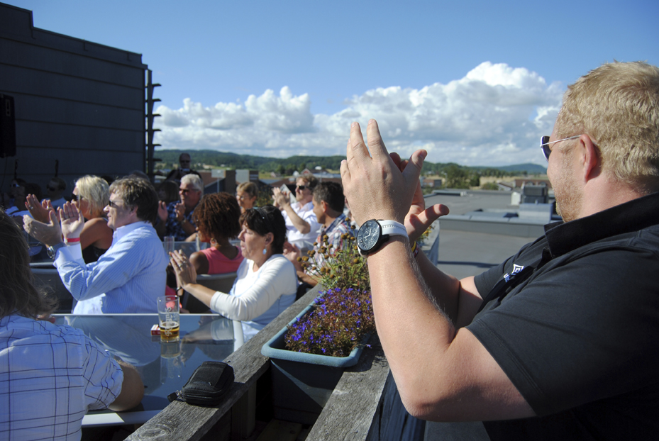 PÅ TAKET: Et lite og ekslusivt publikum fikk med seg en fantastisk konsert på taket av Revetal for 15 år siden, sommeren 2011. Det var i forbindelse med Re minifestival det året. Foto: Stian Ormestad, ReAvisa.