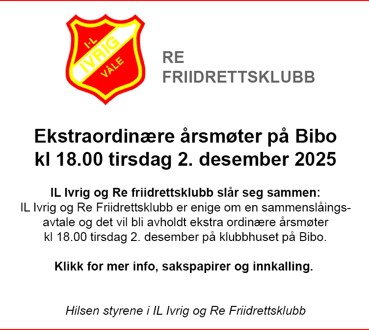 I Re arrangeres Idrettsmerke-prøvene på Ramnes skole på mandager, og på Bibomyra på onsdager, begge steder fra klokka 18.00 og så lenge det er folk som vil prøve seg.